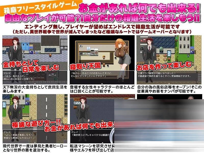 这是一款由XY汉化组精心汉化的日系RPG游戏。故事围绕一个来自奇幻世界的奴隶主展开,他携带巨额财富降临现代世界!然而,他并未改变其本性,反而继续利用一切手段奴役妇女,甚至通过贩卖美女来累积自己的财富,成为现代世界的首富。更令人发指的是,他还公然抢夺普通人的妻子与情人,为她们戴上绿帽,玩腻后再将她们转送至另一个世界并遗弃。