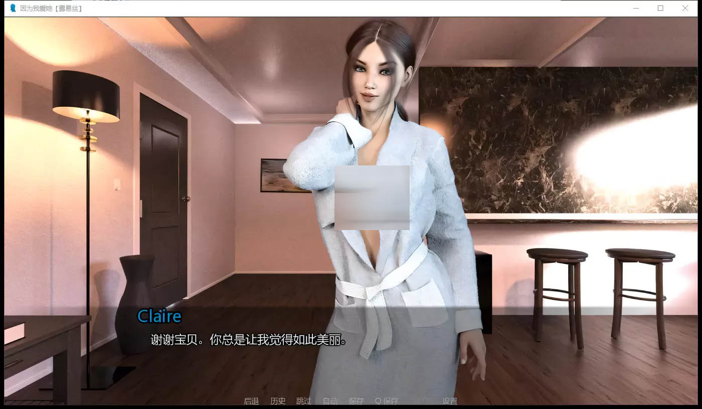 - 游戏版本:1.0,名称:只因为爱她,游戏类型:欧美ADV,上垒+动态CG。游戏大小(PC/安卓):510M/390MB(安卓版画质略差于PC版)。